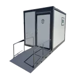 Nuestro módulo sanitario PMR incluye un lavabo PMR y un WC PMR, con una ventana basculante. Está equipado con un suelo reforzado de madera-cemento.
