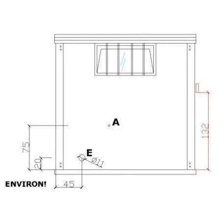 •Entrada de agua en la pared (A) y evacuaciones agrupadas en una única salida (E)