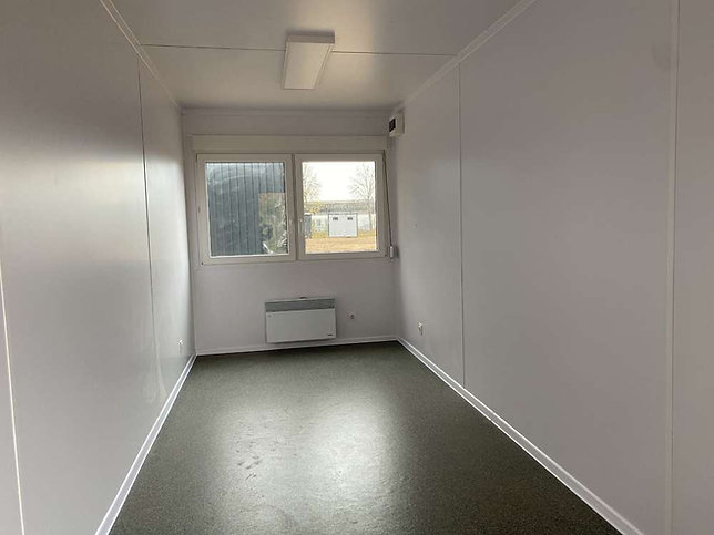 PVC – entrada 380 V, 32 A, 5 polos;1 caja de fusibles y distribuidores, 2 lámparas LED, 1 interruptor, enchufes dobles de 230 V, ventanas y protección solar – 1 ventana doble / 200 cm x 120 cm y persianas enrollables de PVC 1 puerta – 200 cm x 90 cm
